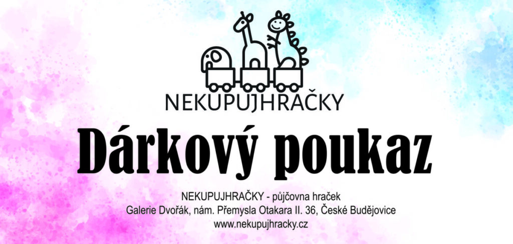 • Poukaz lze uplatnit na prodejně Nekupujhračky – Galerie Dvořák (1. p.), nám. Přemysla Otakara II. 36, České Budějovice.