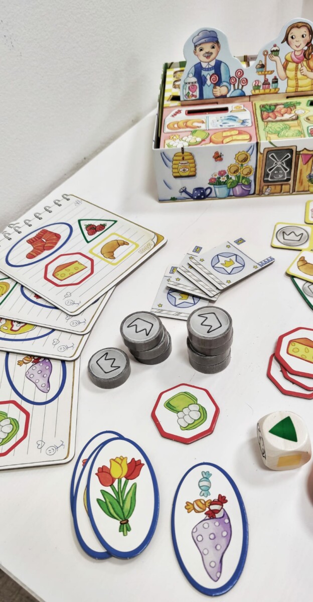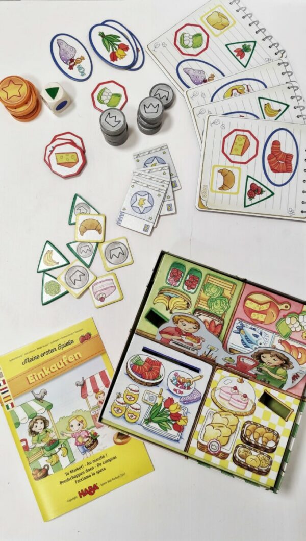 V Haba hře nakupování se děti zábavným způsobem učí nakupovat na trhu. Každý z hráčů má svůj nákupní seznam se čtyřmi položkami. Jednotlivé položky může zakoupit ve stáncích pomocí hodu kostkou. Za nakoupené zboží musí zaplatit uvedenou cenu. Hráč, kterému se jako prvnímu podaří zaplnit svůj nákupní seznam, vyhrává. Děti se učí poznávat hodnotu peněz, orientovat se ve zboží na stáncích. Hra pro 4 hráče. Délka hry cca 10 minut.