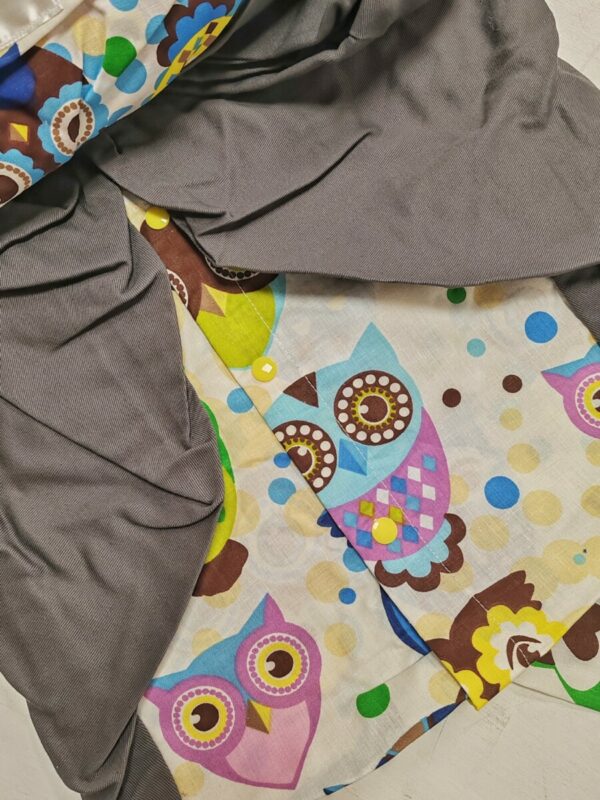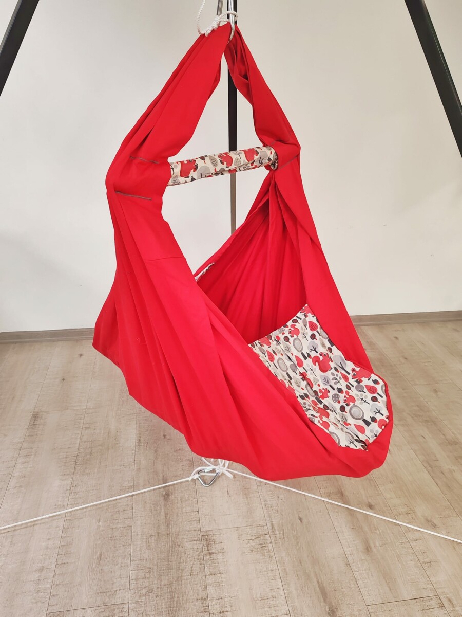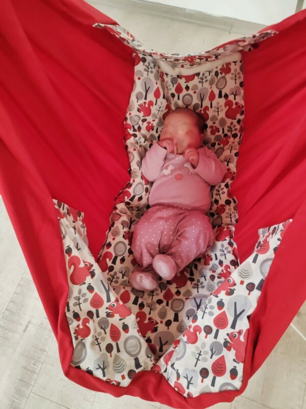 Hačka je ušita z jedné vrstvy 100% bavlněné velmi pevné látky o gramáži cca 240 g/m2. Čelo a doplňky jsou ze dvou vrstev 100% bavlněné látky o gramáži cca 130 g/m2. Hodí se k houpání jak nejmenších miminek, tak i větších a těžších dětí. Její maximální nosnost pro ležící dítě je cca 25 kg (při použití vhodné pružiny).KOUPIT LZE ZDE