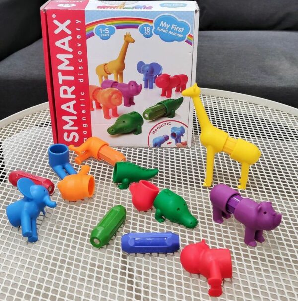 Moje první Safari zvířátka magnetická stavebnice rozvíjí jemnou motoriku, koncentraci, prostorové vnímání a koncentraci. Stačí propojit jednotlivé dílky a během okamžiku je na světě safari se 6 barevnými zvířátky. Stavebnice je určena pro děti od 1 roku a všechny dílky jsou vyrobeny z měkkého a odolného plastu.