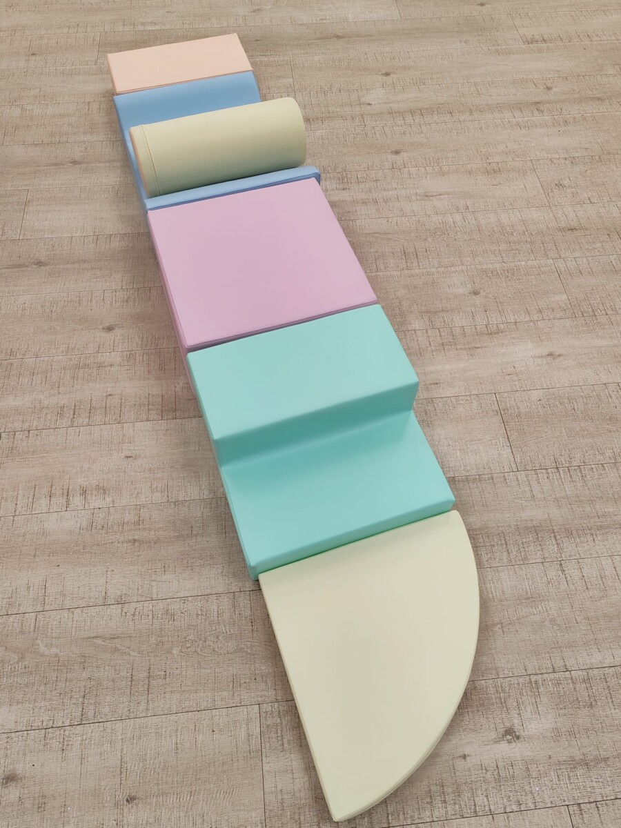 Stavebnice je plná obrovských lehkých měkkých pěnových bloků pro nejmenší. Šest různých tvarů tohoto setu je speciálně přizpůsobeno, aby podporovalo plazivý pohyb dětí. Nabízí množství variant k sestavení, lze vytvořit například překážkovou dráhu nebo herní “hřiště”. Rozvíjí a zdokonaluje koordinaci celého těla, zlepšuje rovnovážný systém, zapojuje smysly, vede k poznávání. Bloky je možné použít také samostatně, jejich velikost je ideální pro volný pohyb dětí, ale současně vytváří výzvy a překonatelné překážky.