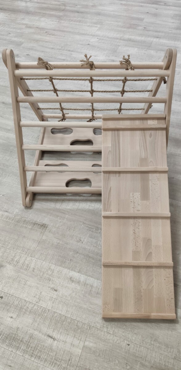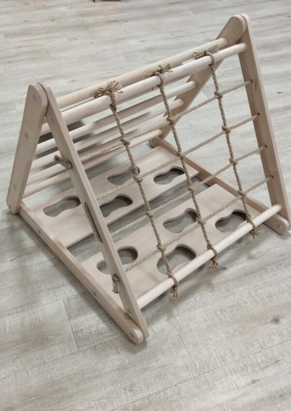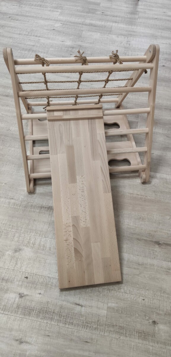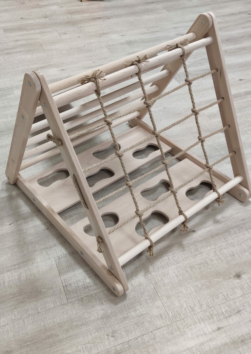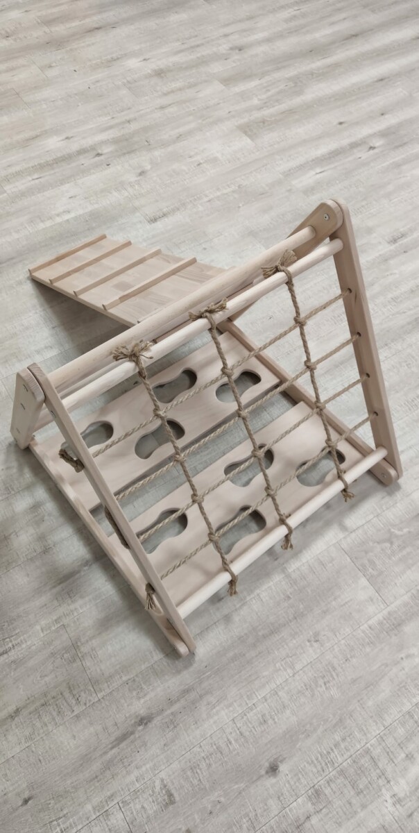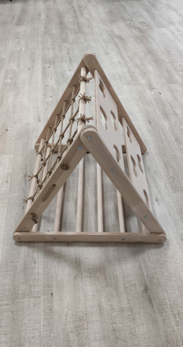Piklerové trojúhelník s deskou trojstranný je bezpečná dřevěná prolézačka pro miminka, batolata a malé děti. Je v souladu s principy Montessori pedagogiky. Děti se rozvíjí přirozenou cestou skrze svobodu pohybu a objevování. Rozvíjí hrubou motoriku dítěte, fyzickou sílu, jistotu  a své schopnosti.