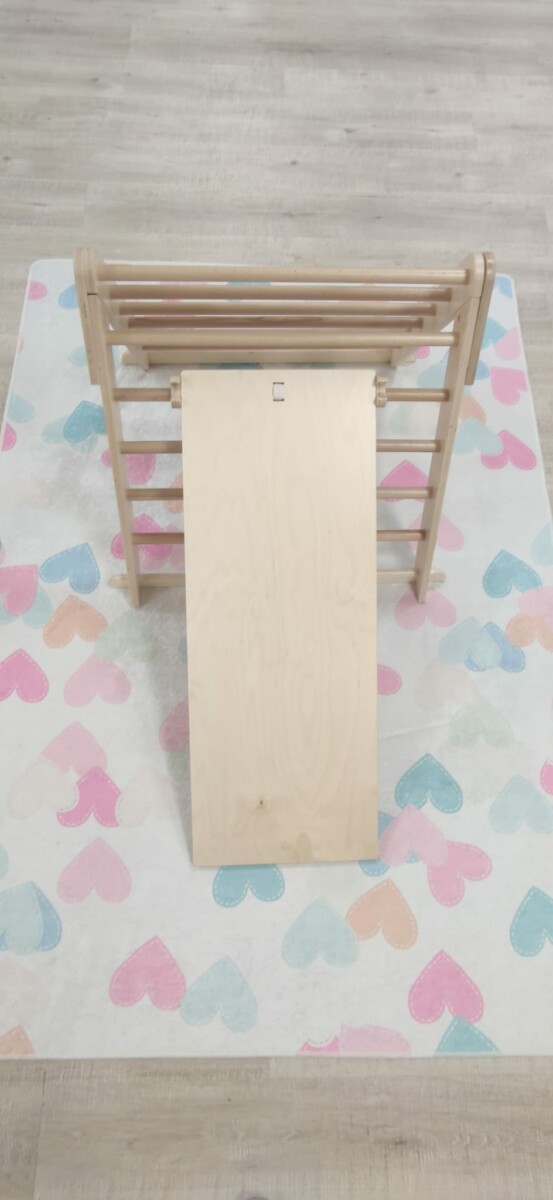 Součástí sestavy je oboustranná deska, která je skluzavkou i lezeckou stěnou v jednom. Lze kombinovat s Utukutu houpačkou.