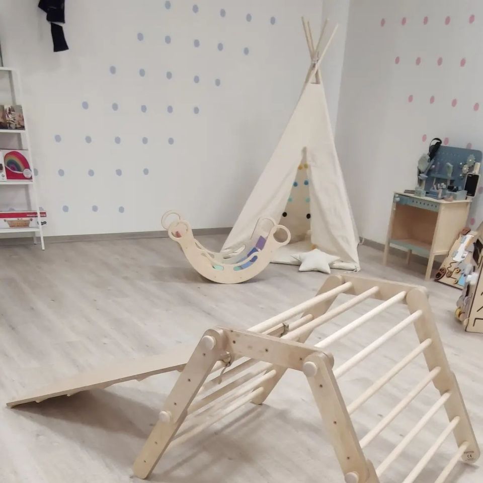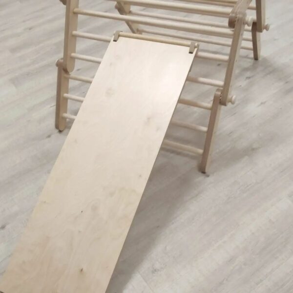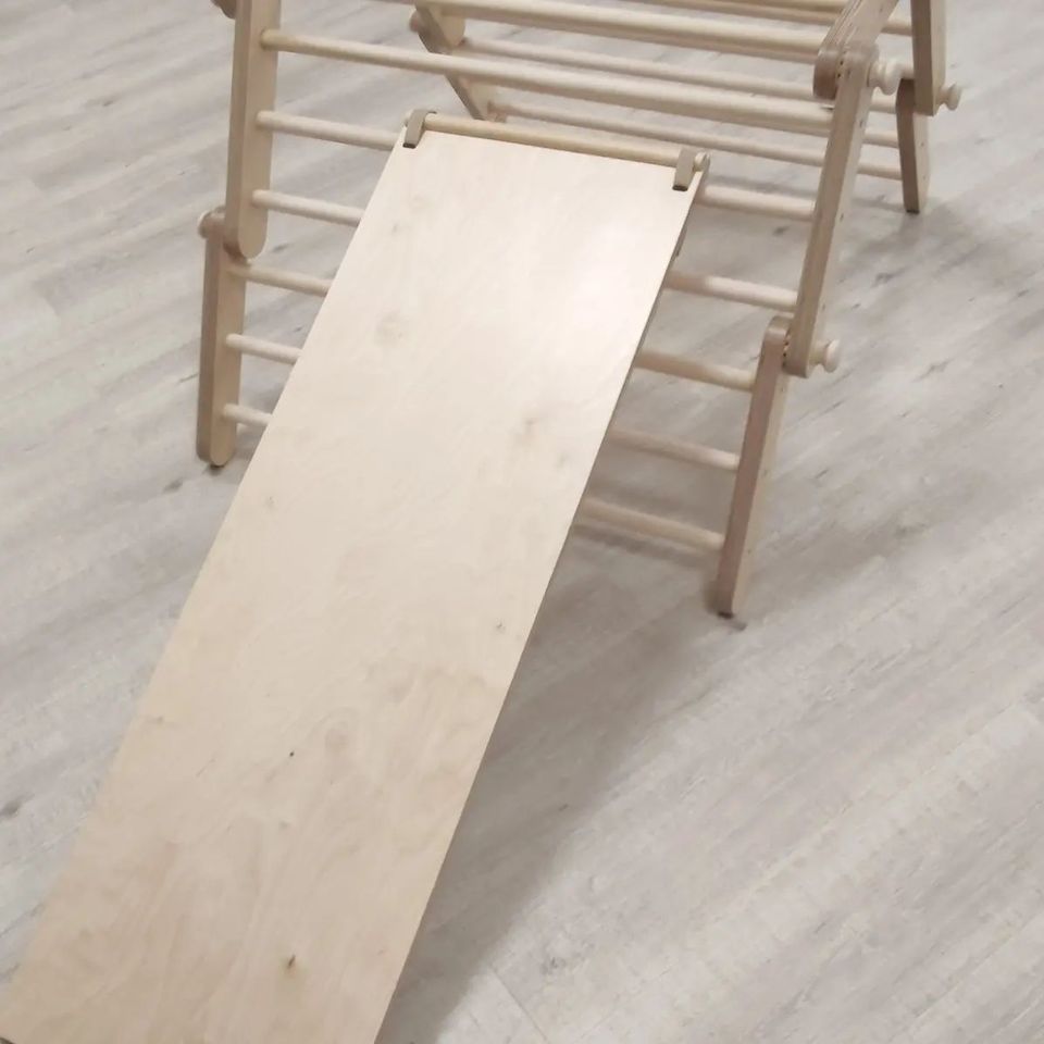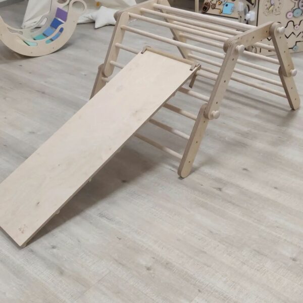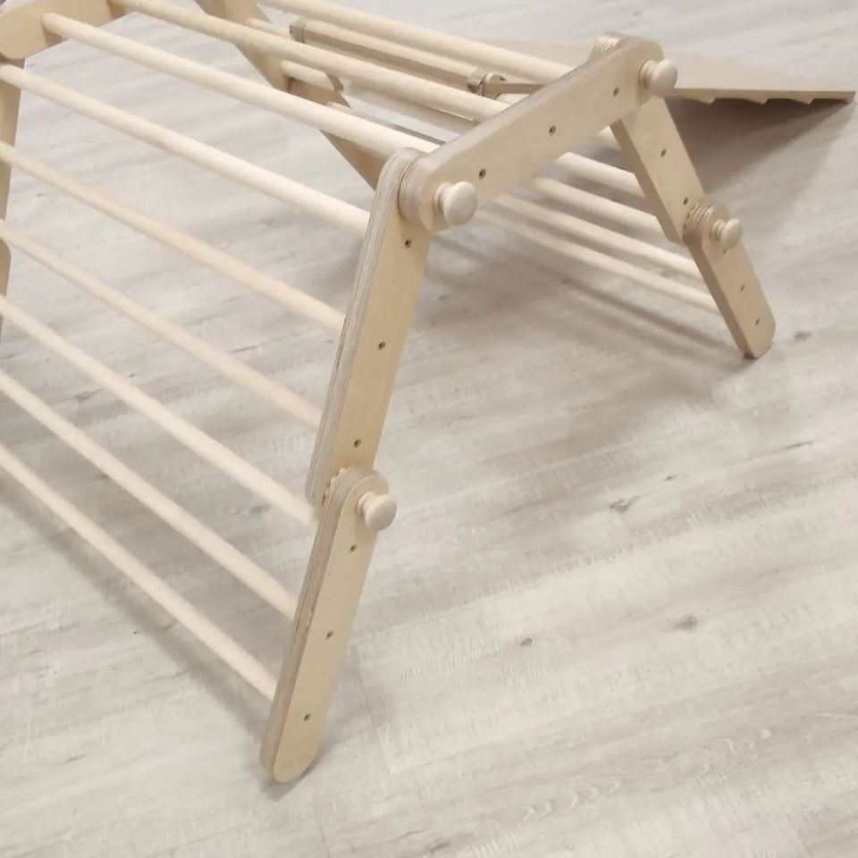 Polohovací Piklerové prolézačka vás překvapí svou možností obměn. Různým tvarováním prolézačky ji snadno přizpůsobíte věku, fyzické zdatnosti, odvaze a potřebám dítěte. Pomocí oboustranného prkna, které je součástí tvarovatelného Piklerové trianglu vytvoříte dětské hřiště přímo v dětském pokoji. Lze kombinovat s Utukutu houpačkou.